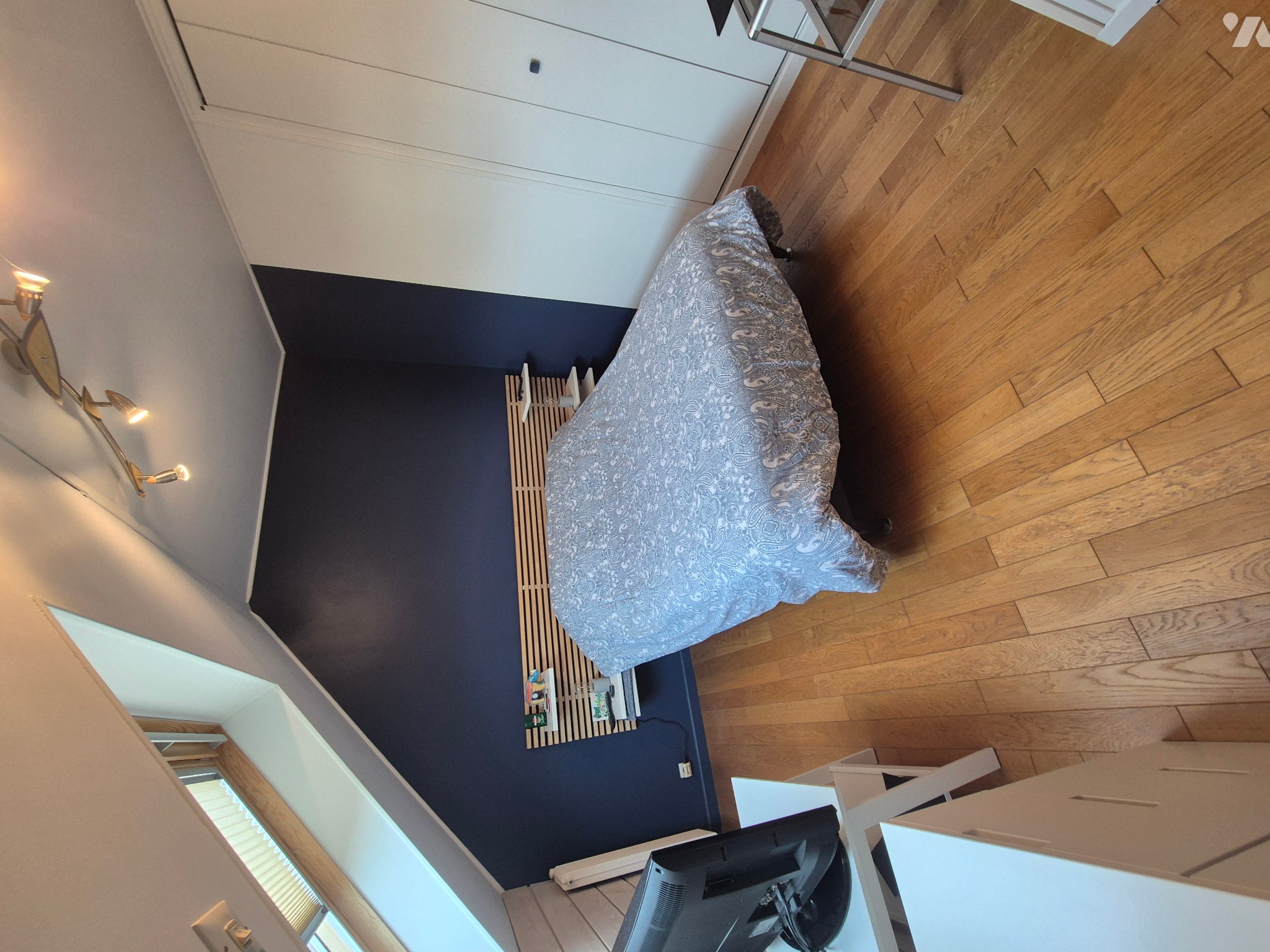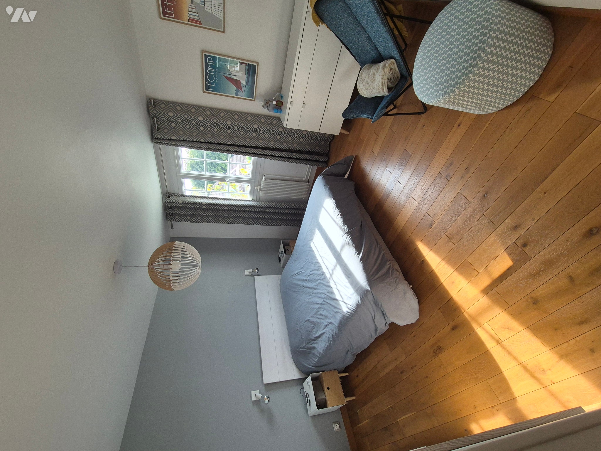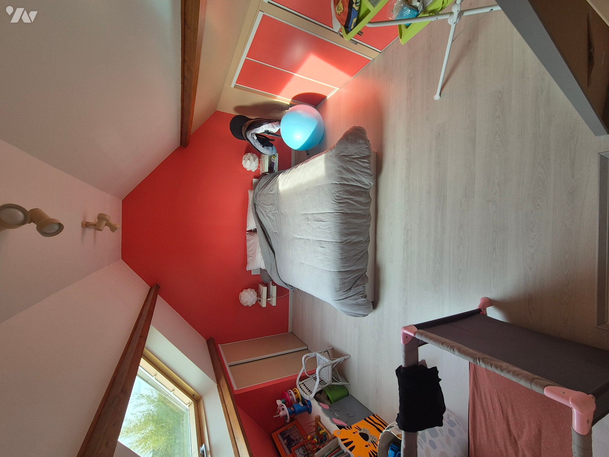 A l'étage : trois chambres avec rangement, un bureau/dressing et une salle de bains avec douche et WC.
