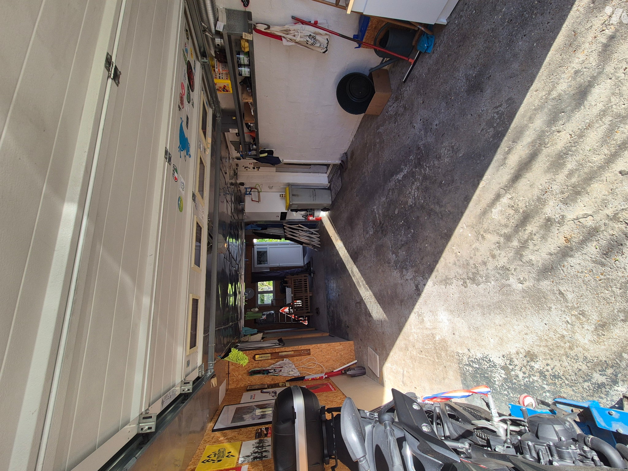 Garage double avec porte sectionnelle, sous-sol complet, dépendance de 15m² pour atelier avec grenier.